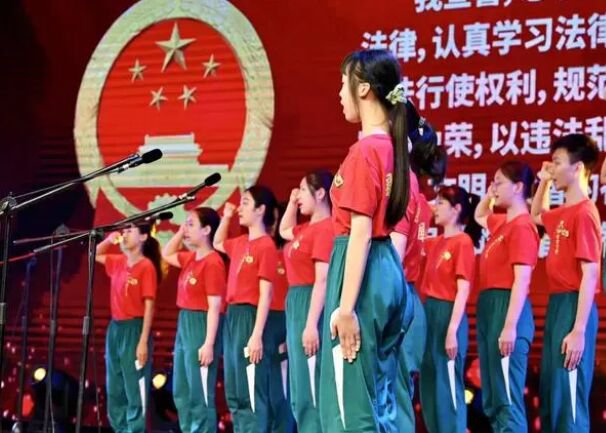 全體同學進行了憲法宣誓并自行佩戴2021級青春紀念章????????????????????????